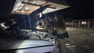 วันจันทร์ ที่ 2 ตุลาคม 2566 เวลา 20.30 น.ภายใต้การอำนวยการของ พ.ต.อ.ทิวากร คงเพ็ชร ผกก.สภ.ป่าพะยอม, พ.ต.ท. สุรชาติ บุญโรจน์พงศ์ รองผกก.ป.ฯ, พ.ต.ท.กิตติพัศ คงศรีทอง สวป.ฯ ได้สั่งการให้ ร.ต.อ.เสน่ห์ ขำตรี รอง สวป.สภ.ป่าพะยอม ปฏิบัติหน้าที่ ร้อยเวร 20 พร้อมชุด ชป.สภ.ป่าพะยอม และสายตรวจ ม.ทักษิณ ออก ว.4 ลาดตระเวนตรวจตราป้องกันเหตุบริการประชาชนในพื้นที่ ขณะปฏิบัติหน้าที่พบประชาชนรถยนต์หมดแบตเตอรี่ จึงเข้าช่วยเหลือโดยการต่อพ่วงแบตเตอรี่ จนรถยนต์สามารถใช้การได้ปกติ ประชาชนสามารถเดินทางต่อได้