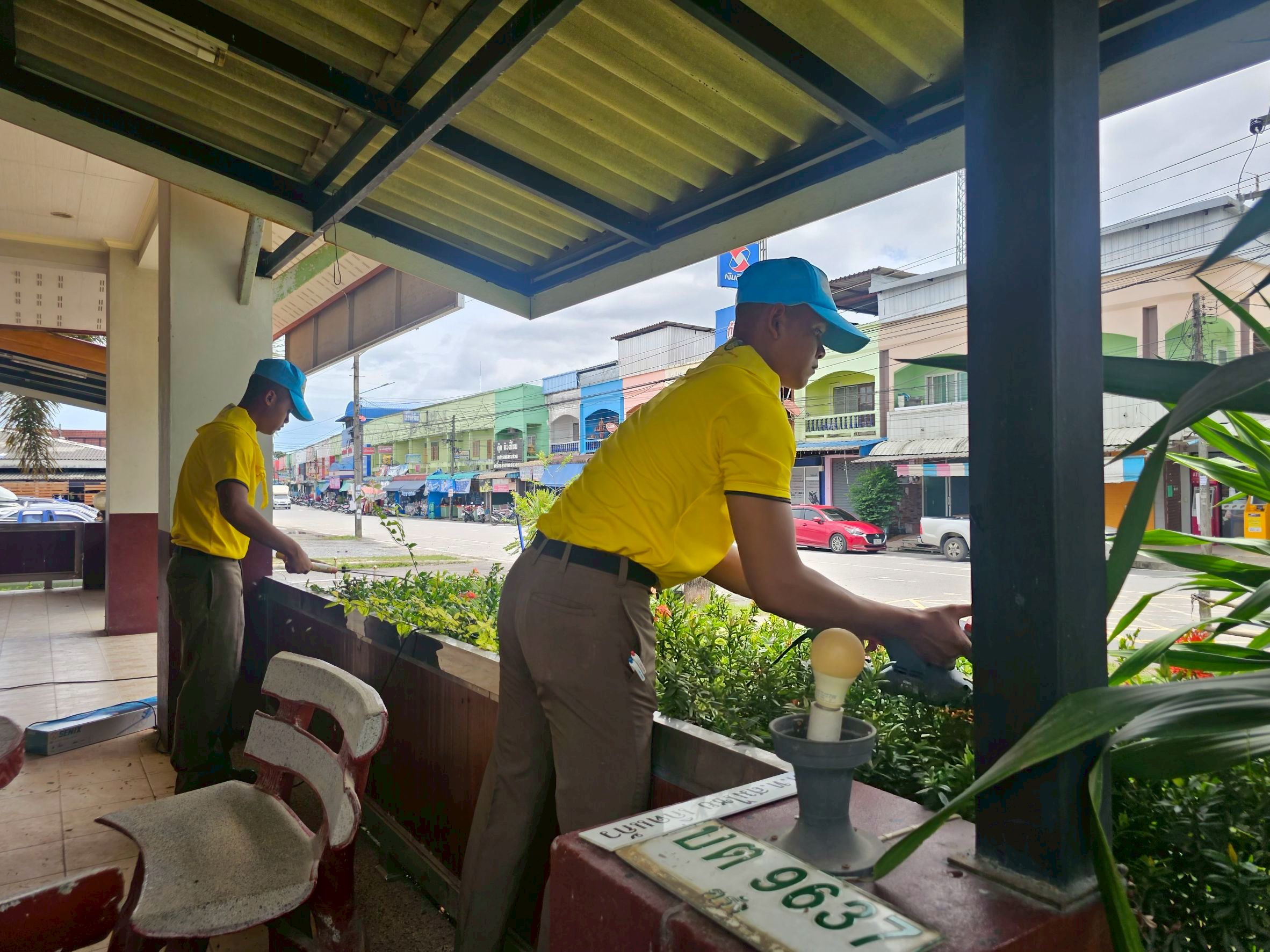 วันพุธ ที่ 22 ต.ค.68 เวลา 11.00 น.ภายใต้การอำนวยการของ พ.ต.อ.ณธรรศกร เกตุขาว ผกก.สภ.ป่าพะยอม มอบหมายให้ พ.ต.ท.เกษฎาวุธ กรอบรัมย์ รอง ผกก.สส.สภ.ป่าพะยอม พร้อมด้วย พ.ต.ต.อาคม บัวขวัญ สว.อก.ฯ, ข้าราชการตำรวจจิตอาสา, นสต.ฝึกปฏิบัติราชการ และนักเรียนฝึกงาน ร่วมกันทำกิจกรรมจิตอาสาพัฒนา เนื่องในวันนวมินทรมหาราช 13 ตุลาคม 2568 และวันปิยมหาราช 23 ตุลาคม 2568 โดยร่วมกันเก็บกวาดขยะ ตัดหญ้า ตัดแต่งกิ่งไม้ ปรับปรุงภูมิทัศน์รอบอาคารที่ทำการ และบริเวณริมถนน เพื่อเพิ่มทัศนวิสัยการขับขี่ ป้องกันการเกิดอุบัติเหตุจราจร ณ สถานีตำรวจชุมชนตลาดใหม่ป่าพะยอม (ป้อมโคบัง) ม.1 ต.บ้านพร้าว อ.ป่าพะยอม จว.พัทลุง
