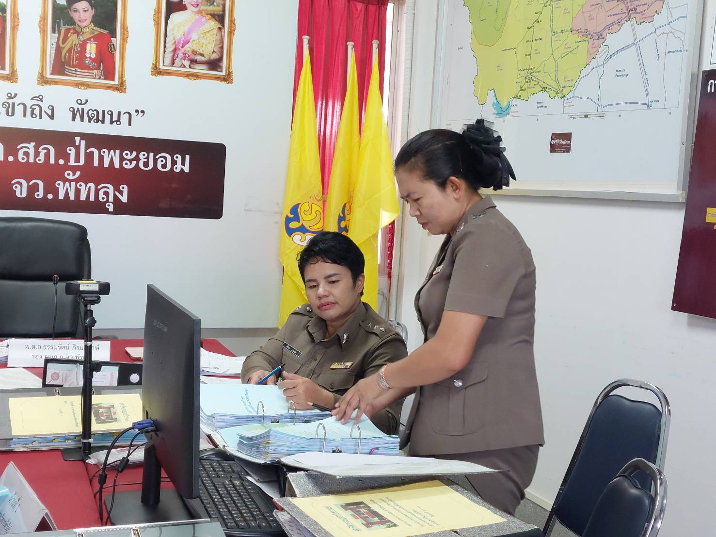 พ.ต.อ.ธรรมรัตน์ ภิรมย์รักษ์ รอง ผบก.ภ.จว.พัทลุงพร้อมคณะกรรมการฯ ตรวจราชการแฟ้ม 5 ด้านของ สภ.ป่าพะยอม