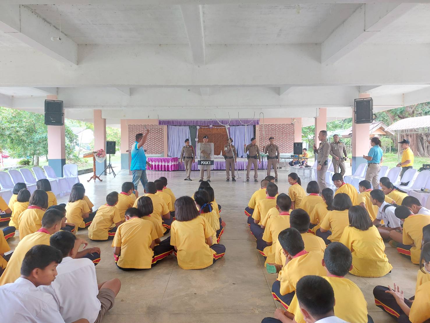 วันศุกร์ ที่ 5 กรกฎาคม 2567 เวลา 13.30 น. ภายใต้การอำนวยการของ พ.ต.อ.ณธรรศกร เกตุขาว ผกก.สภ.ป่าพะยอม มอบหมายให้ พ.ต.ท.สุรชาติ บุญโรจน์พงศ์ รอง ผกก.ป.สภ.ป่าพะยอม เป็นวิทยากรบรรยายซักซ้อมแผนเผชิญเหตุ “หนี ซ่อน สู้” โดยมี พ.ต.ท.กิตติพัศ คงศรีทอง สวป.ฯ พร้อมด้วย ร.ต.อ.ศิริพงศ์ พรหมแก้ว ปฏิบัติหน้าที่ ร้อยเวร 20 ,ชป.สายตรวจรถยนต์ ,สายตรวจจราจร ,สายตรวจตำบลลานข่อย ,ชุด ชมส. คณะครูและนักเรียนโรงเรียนนิคมควนขนุนวิทยา ร่วมซักซ้อมแผนเผชิญเหตุ “หนี ซ่อน สู้” ณ โรงเรียนนิคมควนขนุนวิทยา ม.1 ต.ลานข่อย อ.ป่าพะยอม จว.พัทลุง