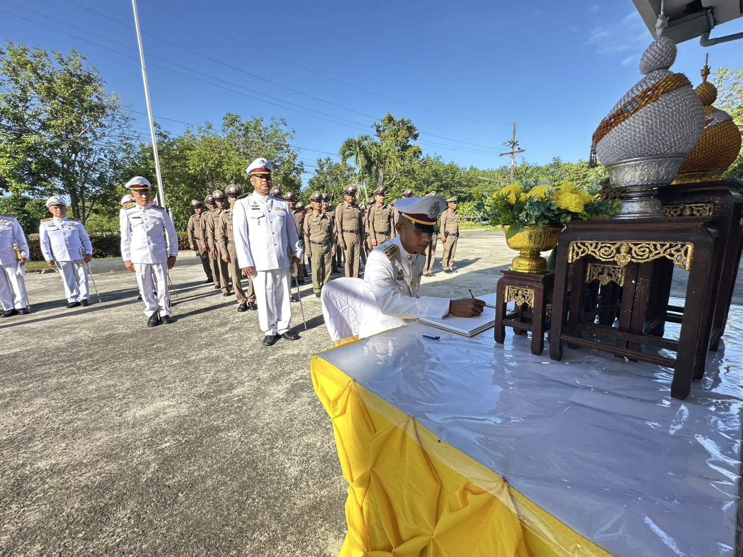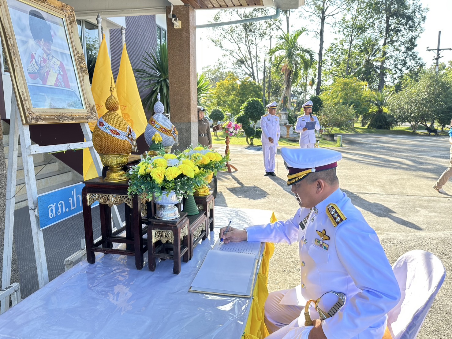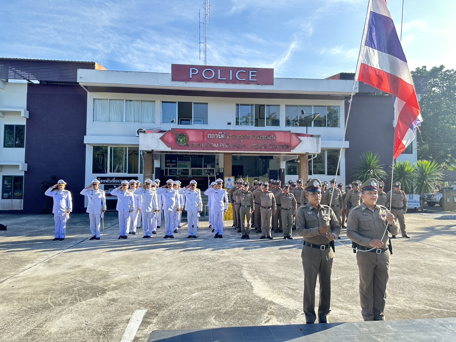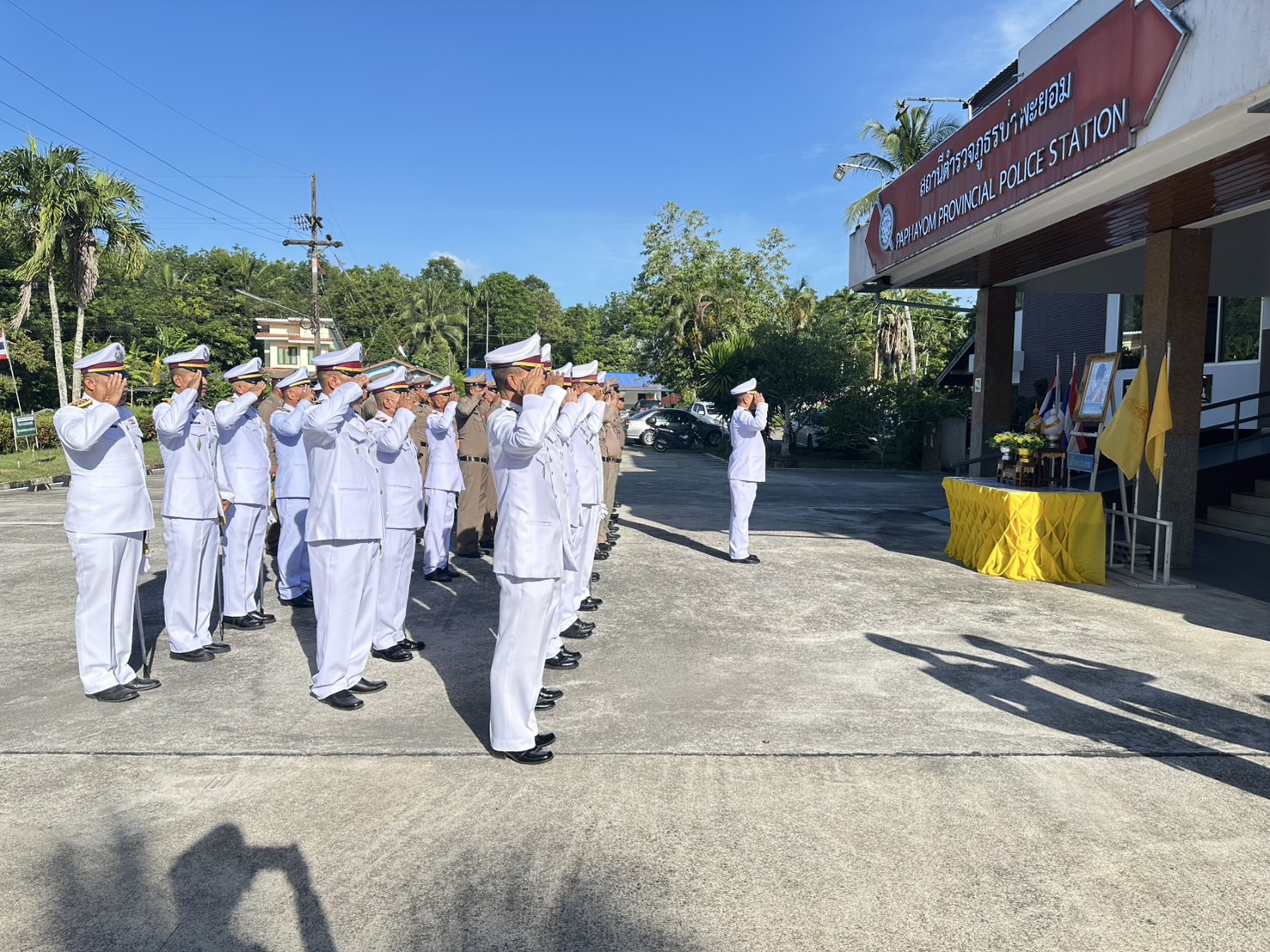 วันศุกร์ ที่ 25 กรกฎาคม 2568 เวลา 08.00 น. พ.ต.อ.ณธรรศกร เกตุขาว ผกก.สภ.ป่าพะยอม พร้อมด้วย พ.ต.ท.สุรชาติ บุญโรจน์พงศ์ รอง ผกก.ป.ฯ, พ.ต.ท.สิทธิพันธ์ พันธ์คีรี รอง ผกก.(สอบสวน)ฯ, พ.ต.ท.เกษฎาวุธ กรอบรัมย์ รอง ผกก.สส.ฯ และข้าราชการตำรวจในสังกัด สภ.ป่าพะยอม ร่วมพิธีถวายสัตย์ปฏิญาณเพื่อเป็นข้าราชการที่ดีและพลังของแผ่นดิน ประจำปี 2568 และร่วมลงนามถวายพระพรชัยมงคลฯ เนื่องในโอกาสพระราชพิธีมหามงคลเฉลิมพระชนมพรรษา 28 กรกฎาคม 2568 ณ บริเวณ หน้าอาคารที่ทำการ สภ.ป่าพะยอม