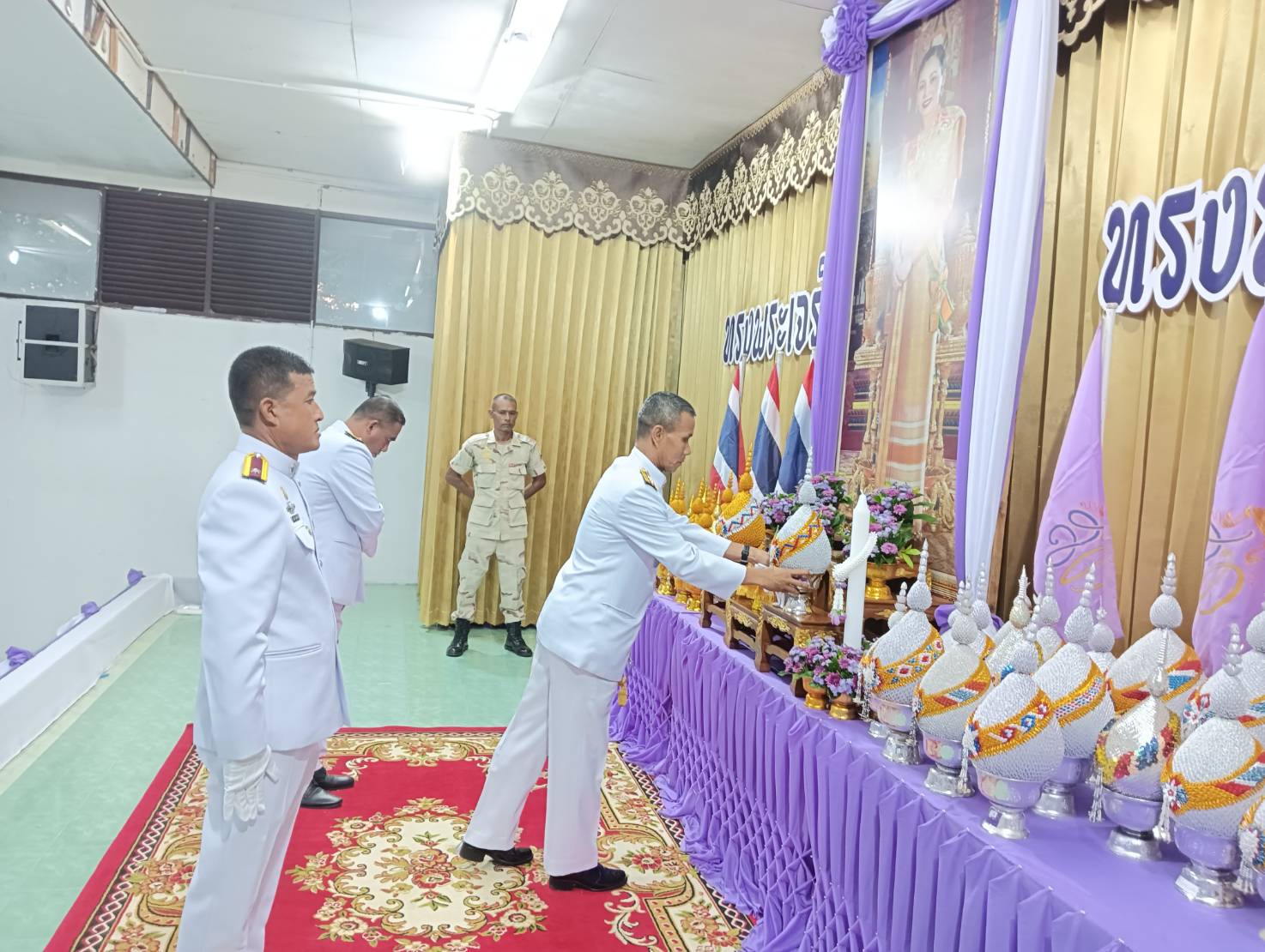 วันจันทร์ ที่ 3 มิถุนายน 2567 เวลา 18.00 น. พ.ต.ท.สุรชาติ บุญโรจน์พงศ์ รอง ผกก.ป.สภ.ป่าพะยอม พร้อมด้วยข้าราชการตำรวจในสังกัด สภ.ป่าพะยอม ร่วมพิธีถวายเครื่องราชสักการะ วางพานพุ่มและจุดเทียนถวายพระพรชัยมงคล เฉลิมพระเกียรติพระบาทสมเด็จพระนางเจ้าฯ พระบรมราชินี เนื่องในโอกาสวันเฉลิมพระชนพรรษา 3 มิถุนายน 2567 ณ ศาลาประชาคมอำเภอป่าพะยอม