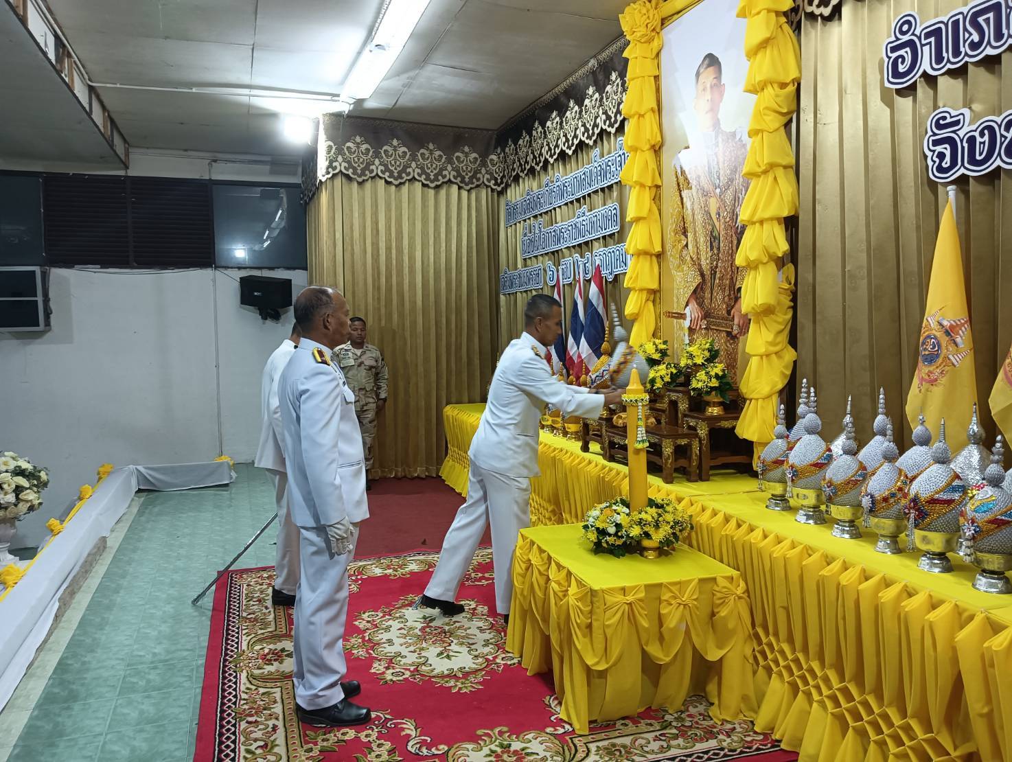 วันอาทิตย์ ที่ 28 กรกฎาคม 2567 เวลา 18.30 น. พ.ต.ท.สุรชาติ บุญโรจน์พงศ์ รอง ผกก.ป.ฯ รรท.ผกก.สภ.ป่าพะยอม พร้อมข้าราชการตำรวจในสังกัด สภ.ป่าพะยอมร่วมวางพานพุ่มและจุดเทียนชัยถวายพระพรชัยมงคลเนื่องในโอกาสมหามงคลเฉลิมพระชนมพรรษา ๖ รอบ ๒๘ ก.ค.๖๗ ณ ศาลาประชาคมอำเภอป่าพะยอม ต.ป่าพะยอม อ.ป่าพะยอม จว.พัทลุง