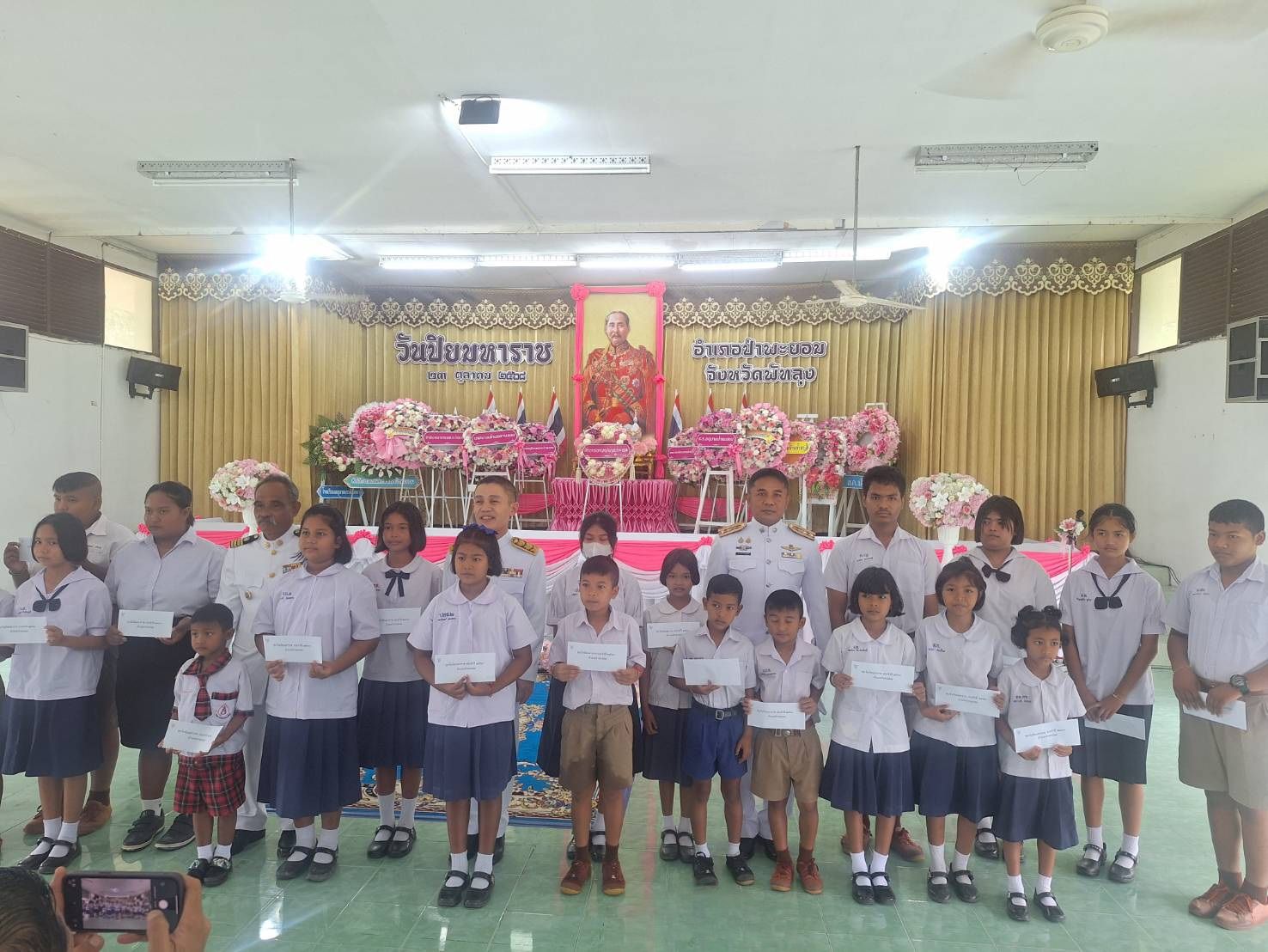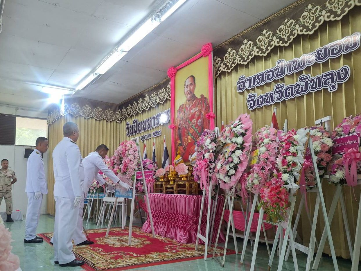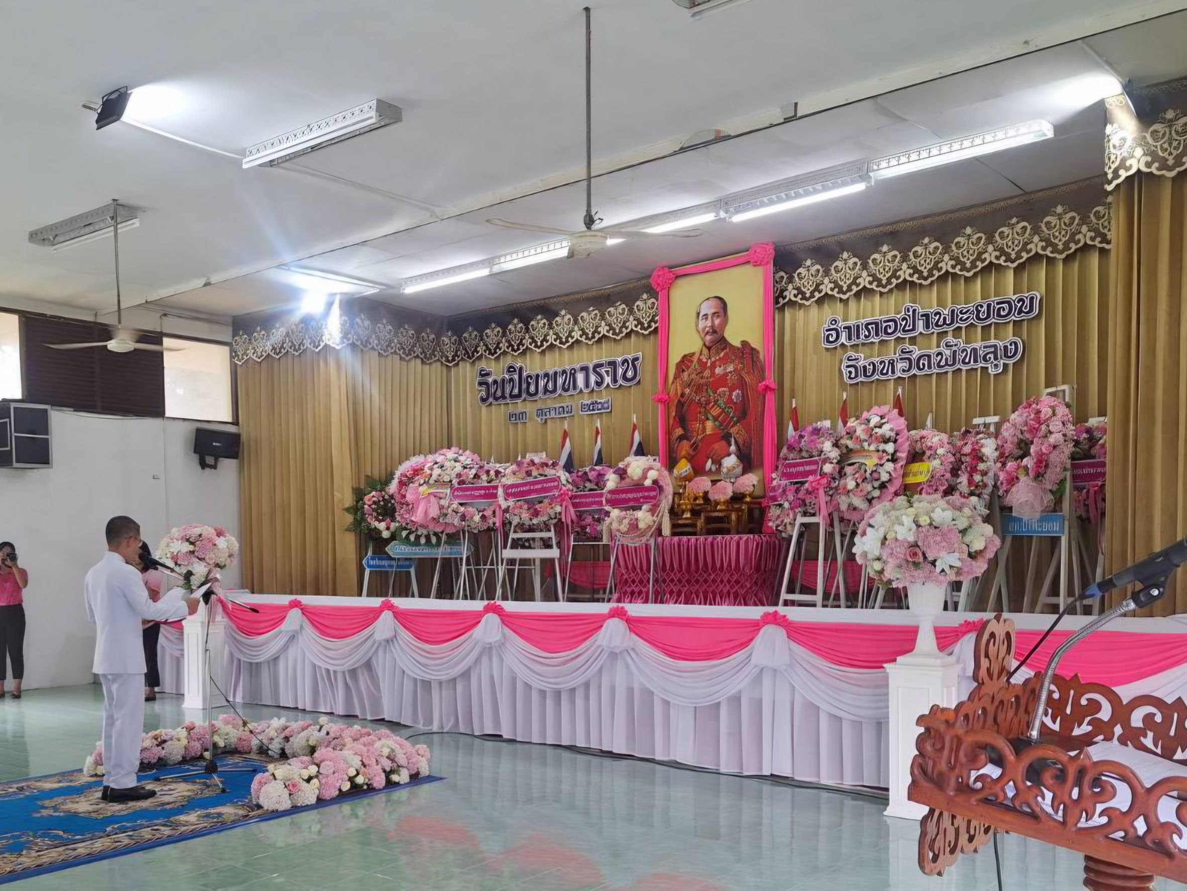 วันพฤหัสบดี ที่ 23 ตุลาคม 2568 เวลา 08.00 น. ภายใต้การอำนวยของ พ.ต.อ.ณธรรศกร เกตุขาว ผกก.สภ.ป่าพะยอม มอบหมายให้ พ.ต.ท.เกษฎาวุธ กรอบรัมย์ รอง ผกก.สส.สภ.ป่าพะยอม พร้อมด้วยข้าราชการตำรวจในสังกัด และ นสต.ฝึกปฏิบัติราชการ ร่วมพิธีวางพวงมาลาถวายราชสักการะ เนื่องในวันคล้ายวันสวรรคต พระบาทสมเด็จพระจุลจอมเกล้าเจ้าอยู่หัว (วันปิยมหาราช 23 ต.ค.68) พร้อมร่วมมอบทุนการศึกษาให้แก่นักเรียน ณ ศาลาประชาคมอำเภอป่าพะยอม ม.3 ต.ป่าพะยอม อ.ป่าพะยอม จว.พัทลุง