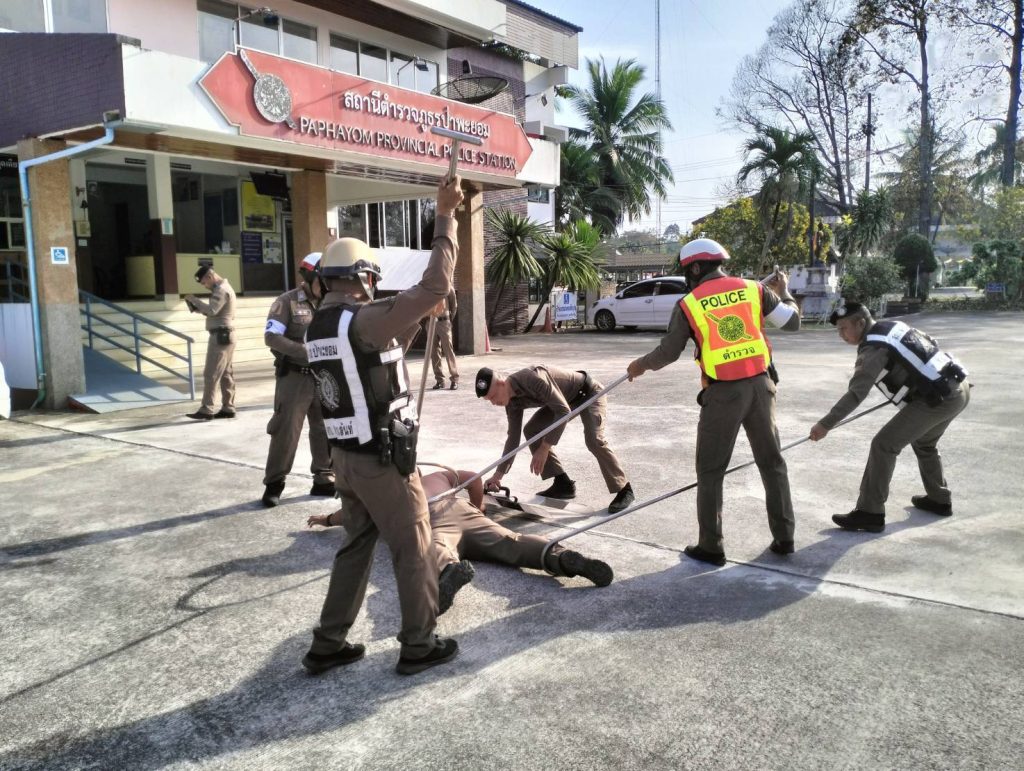วันอังคาร ที่ 11 กุมภาพันธ์ 2568 เวลา 08.30 น. ภายใต้การอำนวยการของ พ.ต.อ.ณธรรศกร เกตุขาว ผกก.สภ.ป่าพะยอม มอบหมายให้ พ.ต.ท.สุรชาติ บุญโรจน์พงศ์ รอง ผกก.ป.สภ.ป่าพะยอม และ ร.ต.อ.โชคดี ขาวอินทร์ รอง สว.ป.ฯ,ชป.สายตรวจรถยนต์ ,สายตรวจจราจร ,สายตรวจ จยย. ร่วมซักซ้อมแผนเผชิญเหตุ การระงับเหตุบุคคลคลุ้มคลั่งด้วยไม้ง่าม ณ ด้านหน้าอาคารที่ทำการ สภ.ป่าพะยอม ม.3 ต.ป่าพะยอม อ.ป่าพะยอม จว.พัทลุง